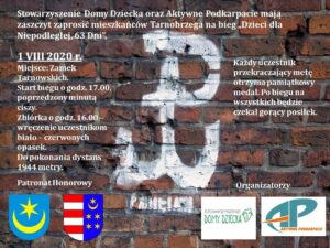 Zbiórkę biegu wyznaczono na godzinę 16.00 przez Zamkiem Tarnowskich w Dzikowie. Zawodnicy upamiętnią powstanie warszawskie minutą ciszy, a o godzinie 17.00 wystartują na dystansie o długości nawiązującej do roku jego wybuchu – 1944 metrów. Mówi współorganizator przedsięwzięcia, dyrektor Domu Dziecka w Skopaniu, Damian Szwagierczak.