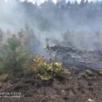Cztery zastępy strażaków gaszą pożar poszycia leśnego w Porębach Furmańskich w gminie Grębów.