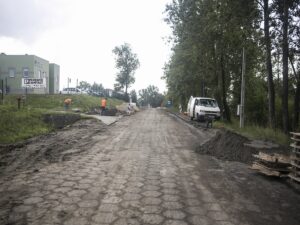 Rozebrano starą nawierzchnię ulicy Strefowej. Aktualnie trwają prace związane z budową kanalizacji deszczowej. W efekcie ulica ta zyska nową nawierzchnię i ciąg pieszo-rowerowy. Powstanie też nowe oświetlenie jezdni oraz elementy odwodnienia. Wartość zadania wynosi ponad półtora miliona złotych. Na inwestycję miasto również pozyskało dofinansowanie z Funduszu Dróg Samorządowych.