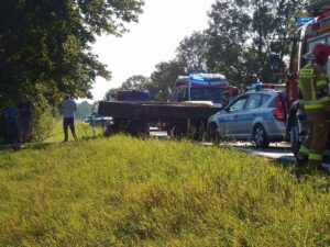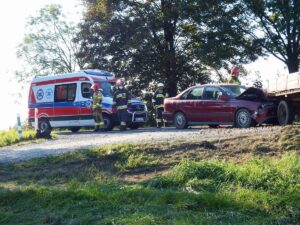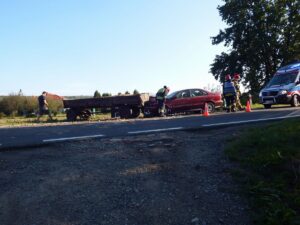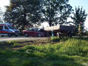Do groźnie wyglądającego zdarzenia doszło dziś w Siedleszczanach, w gminie Baranów Sandomierski. Po godzinie 16, na Drodze Wojewódzkiej 985 osobowe Volvo uderzyło w tył przyczepy ciągniętej przez ciągnik rolniczy.