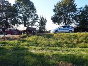 W wyniku uderzenia na jezdnię wysypało się część z przewożonych na przyczepie ziemniaków. Kierowca osóbki został opatrzony na miejscu. Przyczyny zdarzenia wyjaśni policyjne dochodzenie.