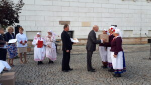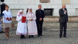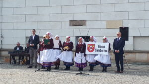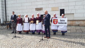 Na dziedzińcu Zamku Królewskiego w Sandomierzu zaprezentowali się przedstawiciele pięciu miast i gmin powiatu sandomierskiego: Dwikóz, Koprzywnicy, Sandomierza, Samborca i Zawichostu.