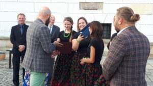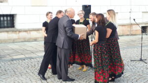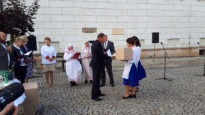 Burocarz znalazł uznanie także wśród przybyłych na zamkowy dziedziniec gości.