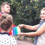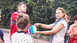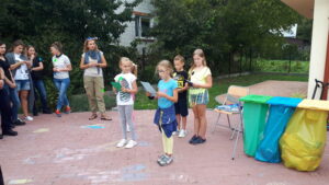 Wszyscy uczestnicy zostali podzieleni według wylosowanych przez siebie kolorowych naklejek oznaczających kategorię zbieranych śmieci: