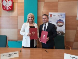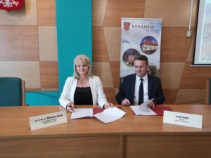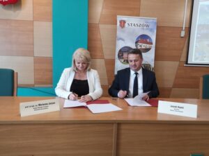 Władze Staszowa i przedstawiciele Politechniki Warszawskiej podpisali dziś w Urzędzie Miasta i Gminy Staszów porozumienie w zakresie budowy na terenach inwestycyjnych w Grzybowie portu przeładunkowego wraz infrastrukturą.