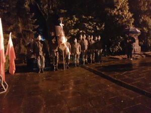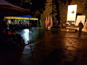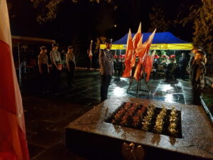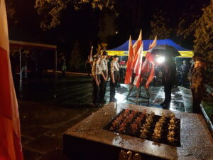 W strugach deszczu uczczono dziś w Tarnobrzegu rocznicę wybuchu II wojny światowej. Uroczystość rozpoczęła się o 4.45 na cmentarzu wojennym. W wydarzeniu oprócz prezydenta miasta, Dariusza Bożka, przewodniczącego Rady Miasta Tarnobrzega, Bogusława Potańskiego uczestniczyli między innymi przedstawiciele duchowieństwa, samorządu, policji, straży miejskiej, harcerze, Strzelcy. O oprawę muzyczną zadbała Miejska Orkiestra Dęta.