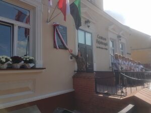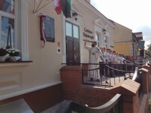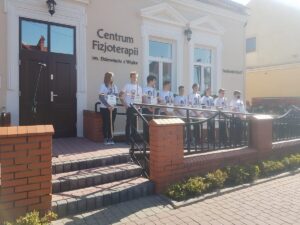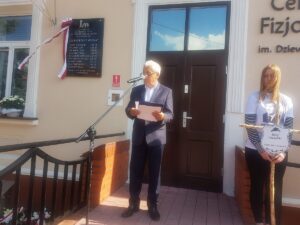Uroczystość miała miejsce na ulicy Sandomierskiej przy budynku Centrum Fizjoterapii imienia Dziewięciu z Wujka, na którego froncie tablica zwisła.