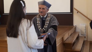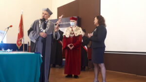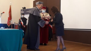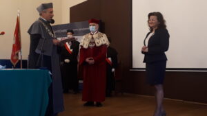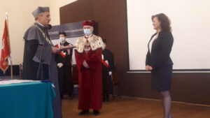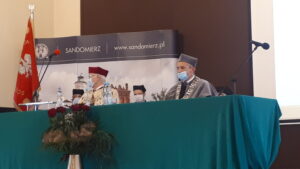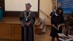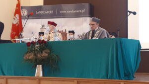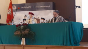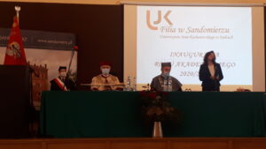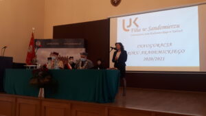 Podczas dzisiejszej inauguracji nowy dziekan skierował słowa wdzięczności za dotychczasowe działania na rzecz uczelni byłej rektor PWSZ i byłej dziekan sandomierskiej filii UJK – dr Małgorzacie Makowskiej, której kadencja się zakończyła.