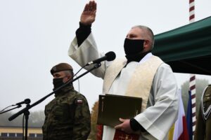 30 żołnierzy. Wieńczy ona szesnastodniowe szkolenie podstawowe, które rozpoczyna służbę w Wojskach Obrony Terytorialnej. Uroczystość poprzedziła msza święta w intencji żołnierzy składających przysięgę, odprawiona w kaplicy przykoszarowej.