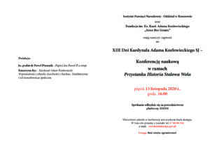 Rzeszowski oddział Instytutu Pamięci Narodowej oraz Fundacja im. Ks. Kard. Adama Kozłowieckiego 'Serce Bez Granic’ zapraszają do udziału w konferencji naukowej w ramach 'Przystanku Historia Stalowa Wola’.