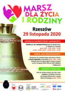 Marsz dla Życia i Rodziny w Rzeszowie odbędzie się w tym roku w innej niż zwykle formie. W najbliższą niedzielę (29 listopada) w stolicy Podkarpacia zabraknie tradycyjnego przemarszu ulicami miasta, jednak samo wydarzenie odbędzie się w trzech odsłonach: najpierw adoracja Najświętszego Sakramentu w kościele św. Jadwigi Królowej w Rzeszowie przy ul. Rejtana po każdej mszy świętej, potem indywidualne przejście do Parku Papieskiego, gdzie stanie dzwon „Głos Nienarodzonych”, który papież Franciszek pobłogosławił podczas audiencji na placu Świętego Piotra w Rzymie we wrześniu. Tam indywidualnie będzie można podejść i uderzając w dzwon, symbolicznie opowiedzieć się po stronie obrony życia. O godzinie 15 00 zaś odmówiona zostanie Koronka do Miłosierdzia Bożego i modlitwa różańcowa.