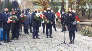 Okolicznościowe przemówienia wygłosili starosta Marcin Piwnik i poseł Marek Kwitek. Po złożeniu kwiatów pod pomnikiem 2 Pułku Piechoty Legionów i 4. Pułku Saperów a następnie pod pomnikiem westerplatczyka plutonowego Władysława Barana pod budynkiem starostwa powiatowego odbyła się prezentacja publikacji 'Powiat Sandomierski – Znaki Pamięci’ autorstwa Danuty oraz Aleksandra Paszkowskich, Marcina Piwnika, Anny Szewczyk, Romana Chyły. Fotografię do publikacji wykonał Grzegorz Bajak.