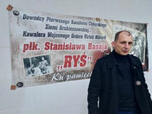 O pamięć pułkownika Stanisława Basaja dba organizator różnych przedsięwzięć patriotycznych i badacz śladów historii najnowszej Mariusz Paweł Hryń z Hrubieszowa, który przyjechał także do Sandomierza: