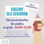 Godziny dla seniorów obowiązują od 15 października. W godzinach od 10.00 do 12.00 w sklepach spożywczych, aptekach, drogeriach i punktach pocztowych mogą przebywać jedynie osoby po sześćdziesiątym roku życia. Godziny dla seniorów zostały nałożone na mocy rozporządzenia Rady Ministrów.