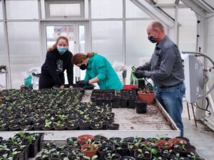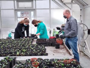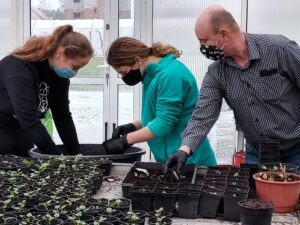 I tak w szklarni w szkolnym gospodarstwie uczniowie dokonują rozsady sadzonek.