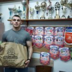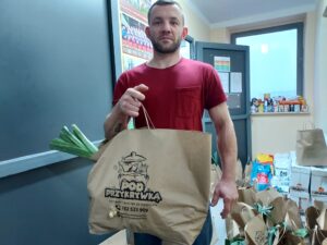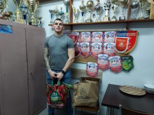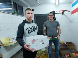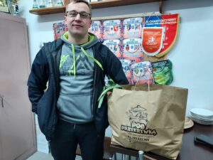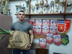 Michał Witczak – od dziecka związany z sandomierskim klubem – zaniósł między innymi paczkę kombatantowi:
