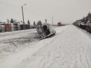Do kolizji trzech aut doszło dziś przed godziną 15, na Drodze Krajowej 77 w Gorzycach. Kierowca osobowego BMW na ośnieżonej drodze zderzył się z Oplem Vivaro, który następnie wpadł do rowu. Niegroźnie uszkodzony został także osobowy fiat. Na miejscu interweniowali strażacy z OSP Gorzyce oraz z Jednostki Ratowniczo Gaśniczej w Tarnobrzegu. Obecni byli też ratownicy medyczni, jednak nikt z uczestników zdarzenia nie wymagał pomocy. Przez około pół godziny Droga Krajowa 77 w miejscu kolizji była zablokowana w obu kierunkach. Teraz ruch odbywa się już bez utrudnień.