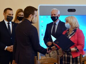 Wraz z prezydentem miasta gratulacje nagrodzonym składali zasiadający w kapitule konkursu „Ośmiu Wspaniałych” – naczelnik Wydziału Edukacji Urzędu Miasta Tarnobrzega, Tomasz Krawczuk i Bożena Kapuściak, wiceprzewodnicząca Rady Miasta Tarnobrzega.