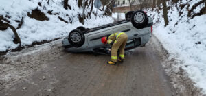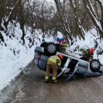 Dwa pojazdy, którymi podróżowały trzy osoby, dachowały w wąwozie Salve Regina w Sandomierzu. W trakcie prowadzonych działań strażacy udzielili jednej osobie kwalifikowanej pierwszej pomocy, założyli kołnierz, udzielili wsparcia psychicznego oraz zabezpieczyli przed utratą ciepła. Przybyły na miejsce zespół ratownictwa medycznego po przebadaniu zabrał jedną osobę poszkodowaną do szpitala na dalsze badania, natomiast dwie osoby pozostały na miejscu. Działania zastępów straży pożarnej polegały na zabezpieczeniu miejsca zdarzenia, stabilizacji pojazdu, odłączaniu zasilania elektrycznego. Po czynnościach przeprowadzonych przez funkcjonariuszy policji ratownicy dokonali sorpcji i neutralizacji rozlanych płynów eksploatacyjnych i uprzątnęli z drogi elementy powypadkowe.