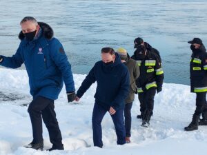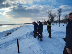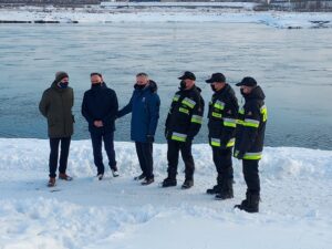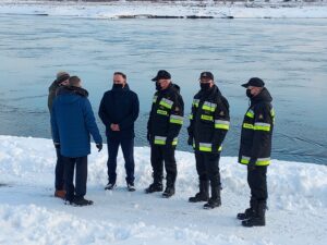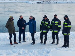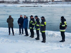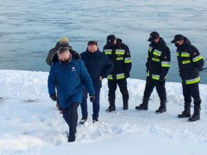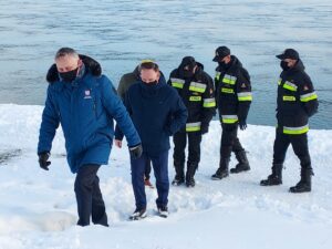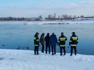 Wojewoda świętokrzyski Zbigniew Koniusz podczas roboczej wizyty w Sandomierzu w towarzystwie przedstawicieli Państwowej Straży Pożarnej oraz Państwowego Gospodarstwa Wodnego Wody Polskie sprawdzał tereny nad Wisłą pod kątem bezpieczeństwa przeciwpowodziowego.