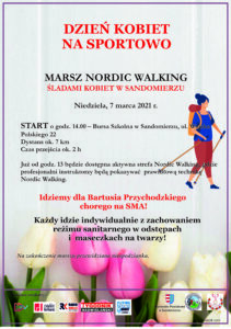 Marsz nordic walking śladami kobiet w Sandomierzu pod hasłem „Idziemy dla Bartusia Przychodzkiego chorego na SMA” to propozycja na niedzielne popołudnie w ramach „Powiatowego Dnia Kobiet na sportowo”.