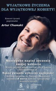 Aktor teatralny i telewizyjny a zarazem wokalista Artur Chamski wystapi w Sandomierzu. Specjalny koncert życzeń przygotowało z okazji Dnia Kobiet Sandomierskie Centrum Kultury.