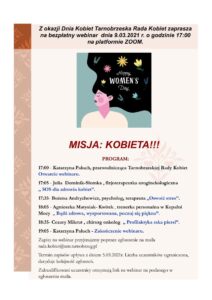 Tarnobrzeska Rada Kobiet organizuje bezpłatny webinar pod hasłem „Misja: Kobieta!!!”.