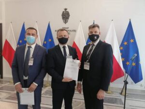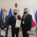 Starosta sandomierski Marcin Piwnik, burmistrz Sandomierza Marcin Marzec i wiceprzewodniczący sandomierskiej Rady Miasta Piotr Chojnacki złożyli dziś w Kancelarii Prezesa Rady Ministrów, ministrów rolnictwa i infrastruktury, marszałków Sejmu i Senatu oraz klubów parlamentarnych pisma wraz z prawie czterema tysiącami podpisów mieszkańców pod petycją o jak najszybsze zaktualizowanie map zagrożenia powodziowego i map ryzyka powodziowego, które w obecnym kształcie – zdaniem samorządowców – udaremniają lub mocno utrudniają rozwój sześciu gmin powiatu sandomierskiego.