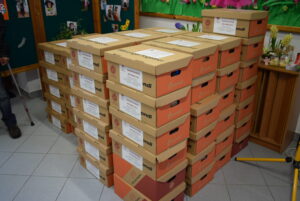 W tym roku tradycyjne potrawy świąteczne ze względu na nałożony reżim sanitarny były zapakowane i przygotowane do osobistego odbioru w budynku Caritas.