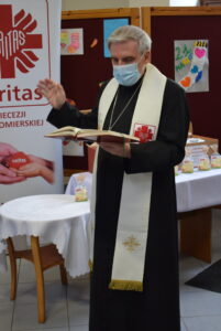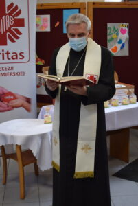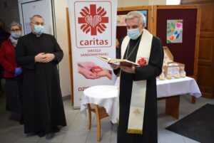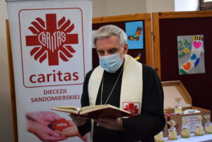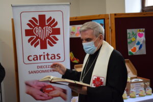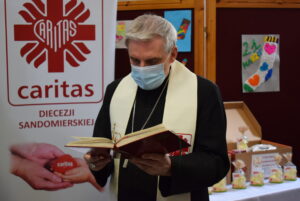 Święcenie pokarmów miało miejsce w siedzibie Caritas Diecezji Sandomierskiej, która przygotowała sześćdziesiąt paczek ze świątecznymi potrawami dla osób potrzebujących.