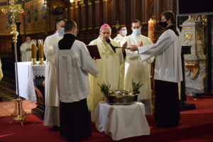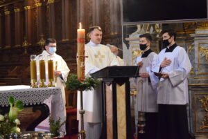 Biskup Krzysztof Nitkiewicz przewodniczył liturgii Wigilii Paschalnej w sandomierskiej katedrze.