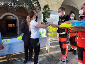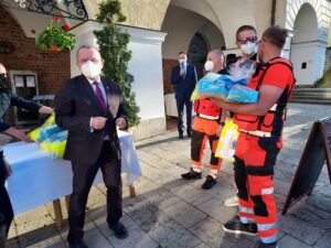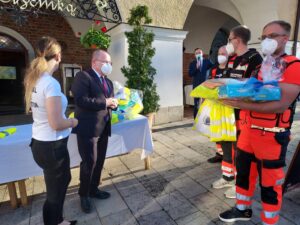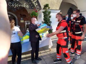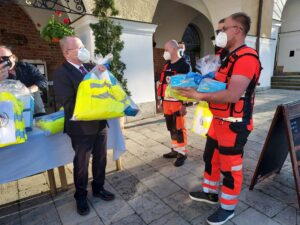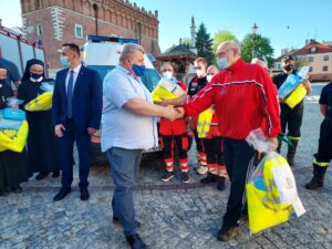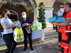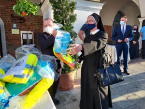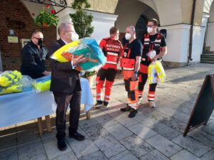Kilka tysięcy sztuk artykułów ochronnych i elementów odblaskowych trafiło w ramach projektu Bezpieczne Powiaty Świętokrzyskie do sandomierskich stowarzyszeń: