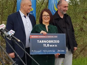 Tarnobrzeg otrzymał dodatkowe pieniądze na budowę obwodnicy. Środki pochodzą z rezerwy subwencji ogólnej. Czek na blisko 12 milionów złotych wręczył dziś prezydentowi Tarnobrzega Dariuszowi Bożkowi wiceminister infrastruktury Rafał Weber. Przekazanie miało miejsce na placu budowy tarnobrzeskiej drogi obwodowej.