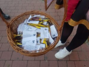 Dzień Dobrych Uczynków uczciło w środę Tarnobrzeskie Centrum Wolontariatu. Wolontariusze z centrum mieszczącego się w kamienicy przy Placu Bartosza Głowackiego 34, przed siedzibą placówki namawiali przechodniów do świętowania. Postaci z bajek, w tym tarnobrzeski Straszon częstowali batonikami, do których przypięte były wyzwania.