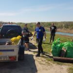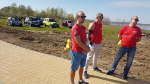 Nad jezioro przyjechały auta terenowe. Blisko 50 osób z Grupy Off-Road Tarnobrzeg również dołączyło do oczyszczania okolic jeziora. Wśród nich byli Krystian Kochowski i administrator grupy Łukasz Kucharski.