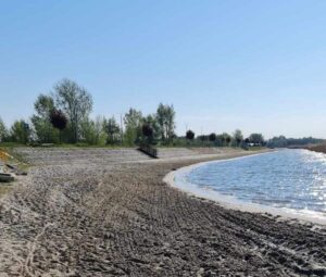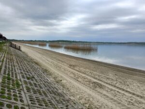 Wywrotki z piachem rozpoczęły dziś ( czwartek, 13 maja) kursy nad Jezioro Tarnobrzeskie. W ciągu najbliższych dwóch, trzech tygodni piaskiem uzupełnione zostaną cztery kilometry plaży na całej szerokości plus metr od linii brzegowej w głąb wody. Łącznie nad akwenem rozsypanych zostanie cztery tysiące ton sypkiego materiału. Jego koszt to 110 tysięcy złotych.