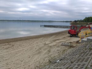 Przed dosypywaniem świeżego materiału, stary piasek na plażach Jeziora Tarnobrzeskiego został oczyszczony i przesiany.