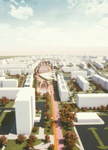 Projekt przewiduje budowę ścieżki pieszo-rowerowej, w miejscu istniejącej betonowej trasy wiodącej między blokami. Wzdłuż alei miałyby powstać skwery, każdy o innym charakterze, aby mieszkańcy osiedla i miasta w każdym wieku mogli znaleźć swoją przestrzeń.