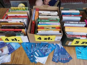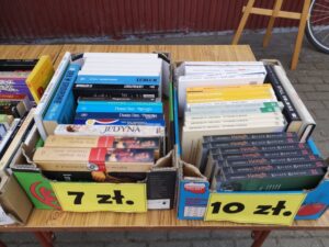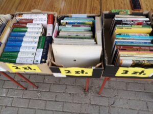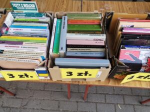 Na stolikach ustawionych przed placówką można było znaleźć między innymi powieści kryminalne, sensacyjne, romanse, tytuły popularno-naukowe, czy książki dla dzieci. Można je było nabyć za kilka złotych.
