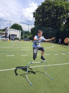 Najmłodsi rywalizowali na torze przeszkód, który był dostosowany do ich wieku i możliwości np. bieg z przeszkodami, rzuty do kosza, biegi. Następna frajdą, która zawsze cieszy się dużym powodzeniem było malowanie twarzy – tę atrakcje przygotowała Rada Rodziców. W następnej kolejności można było skorzystać z tzw. dmuchawców – też nie brakowało chętnych, a na koniec po tak wyczerpujących zajęciach – dla regeneracji sił – pyszna kiełbaska z grilla.