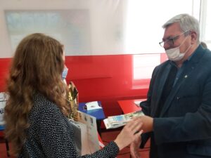 Naczelnik wydziału oświaty w Starostwie Powiatowym dr Janusz Suszyna zwraca uwagę na atrakcyjność audiowizualnej formy prac: