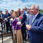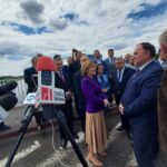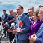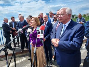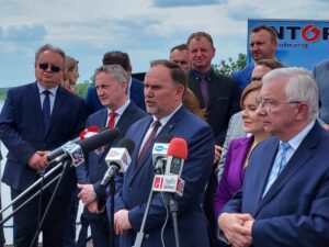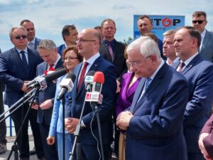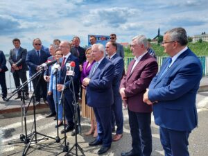 W czasie konferencji prasowej na moście w Sandomierzu obecni byli świętokrzyscy parlamentarzyści: