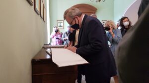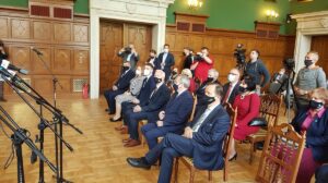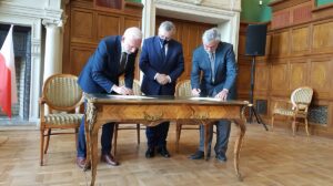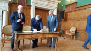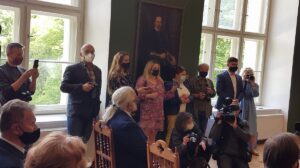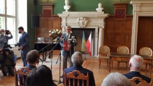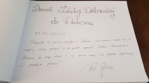 Minister kultury, prezydent Tarnobrzega oraz dyrektor Muzeum Historycznego Miasta Tarnobrzega na pamiątkę dzisiejszego wydarzenia złożyli podpis pod dokumentem przygotowanym specjalnie na tę okazję. Treść pisma odczytał dyrektor muzeum.