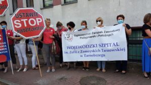 W poniedziałek, przez dwie godziny pielęgniarki i położne ze szpitala Wojewódzkiego w Tarnobrzegu pikietowały solidaryzując się z protestującymi w 40 miastach Polski przedstawicielami tego zawodu. Pokojowo i w czasie wolnym od pracy, trzymając w dłoniach transparenty i plakaty wyraziły swój sprzeciw wobec „ustawy Niedzielskiego”.