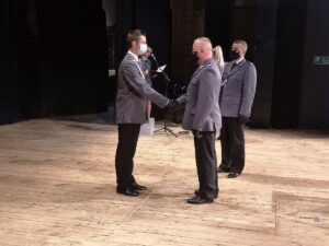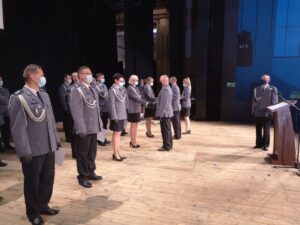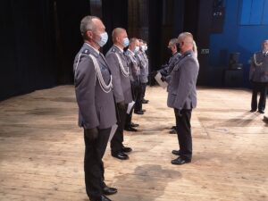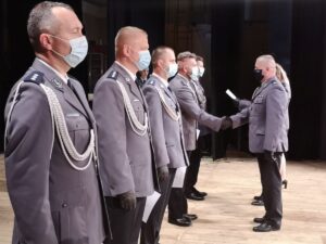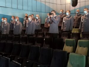 Awanse na wyższe stopnie, odznaczenia i wyróżnienia dla policjantów. Tak funkcjonariusze z Komendy Miejskiej Policji w Tarnobrzegu obchodzili dziś swoje święto. Z powodu pandemii uroczystość, którą zorganizowano w Tarnobrzeskim Domu Kultury była skromniejsza niż w latach ubiegłych.
