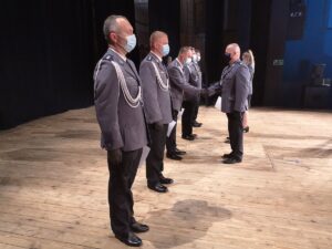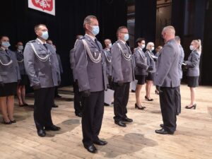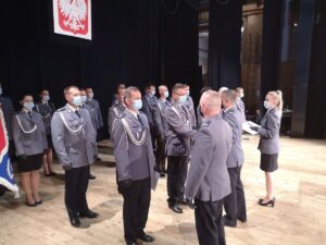 Podczas uroczystości 56 funkcjonariuszy otrzymało awans na wyższe stopnie służbowe. Sześciu policjantów otrzymało go przed terminem jako wyróżnienie za wyjątkowe i sumienne wykonywanie obowiązków służbowych. Przyznano także medale zasłużony policjant i za długoletnią służbę. Odznaczenia te policjanci odbiorą podczas wojewódzkich obchodów Święta Policji w Zaczerniu.