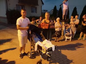 Na zakończenie imprezy wszyscy uczestnicy zlotu przejechali lokalnymi drogami w asyście pojazdów OSP, aby finalnie zatrzymać się pod rodzinnym domem Wiktorka. Tam na ręce rodziców chłopca przekazana została cała zebrana podczas imprezy kwota. To ponad 14,5 tysiąca złotych.