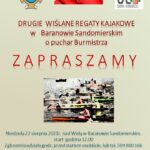 Zwieńczeniem obchodów będą rozegrane na Wiśle II Regaty Kajakowe o Puchar Burmistrza Miasta i Gminy Baranów Sandomierski. Ich początek zaplanowano w samo południe.