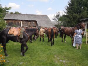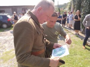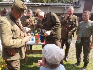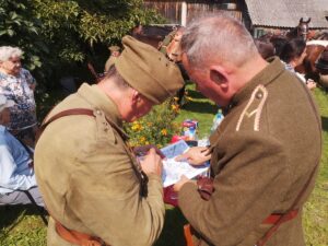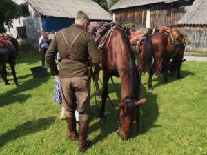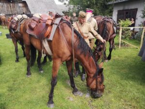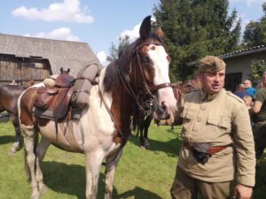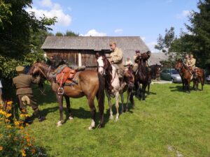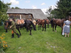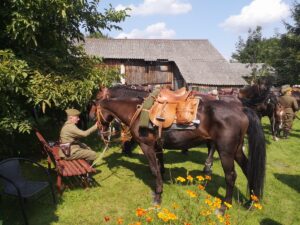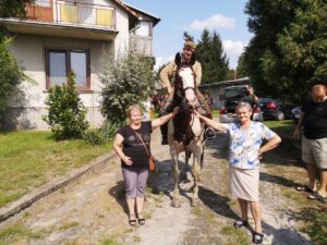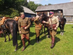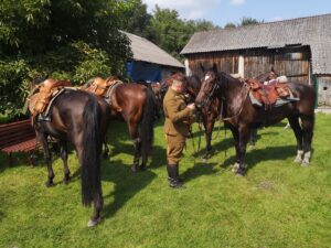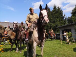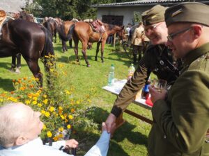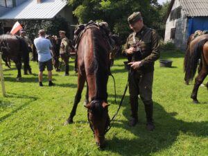 Wizyta kawalerzystów w Dąbrowicy była nie małą sensacją. Wielu mieszkańców wsi przyszło, aby zobaczyć niecodziennych gości. Nie zabrakło wspólnych rozmów oraz zdjęć.
