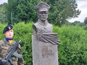 Popiersie generała stanęło w sąsiedztwie pomnika rycerza Zawiszy Czarnego z Garbowa.